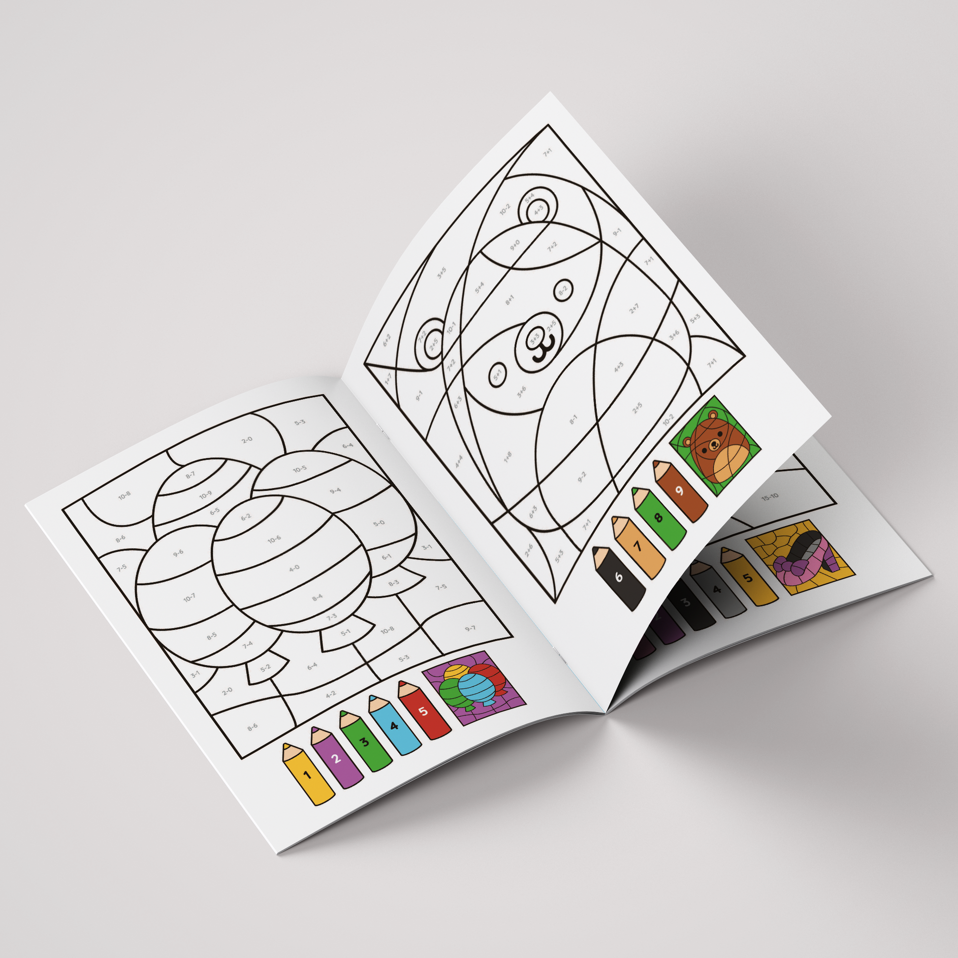 Lavinamoji spalvinimo knygelė, skirta vaikams, kurie nori mokytis žaisdami. Kiekviename puslapyje jie atliks paprastas matematines užduotis (sudėtį ir atimtį) ir pagal gautus rezultatus spalvins piešinius. Ši knygelė padeda: