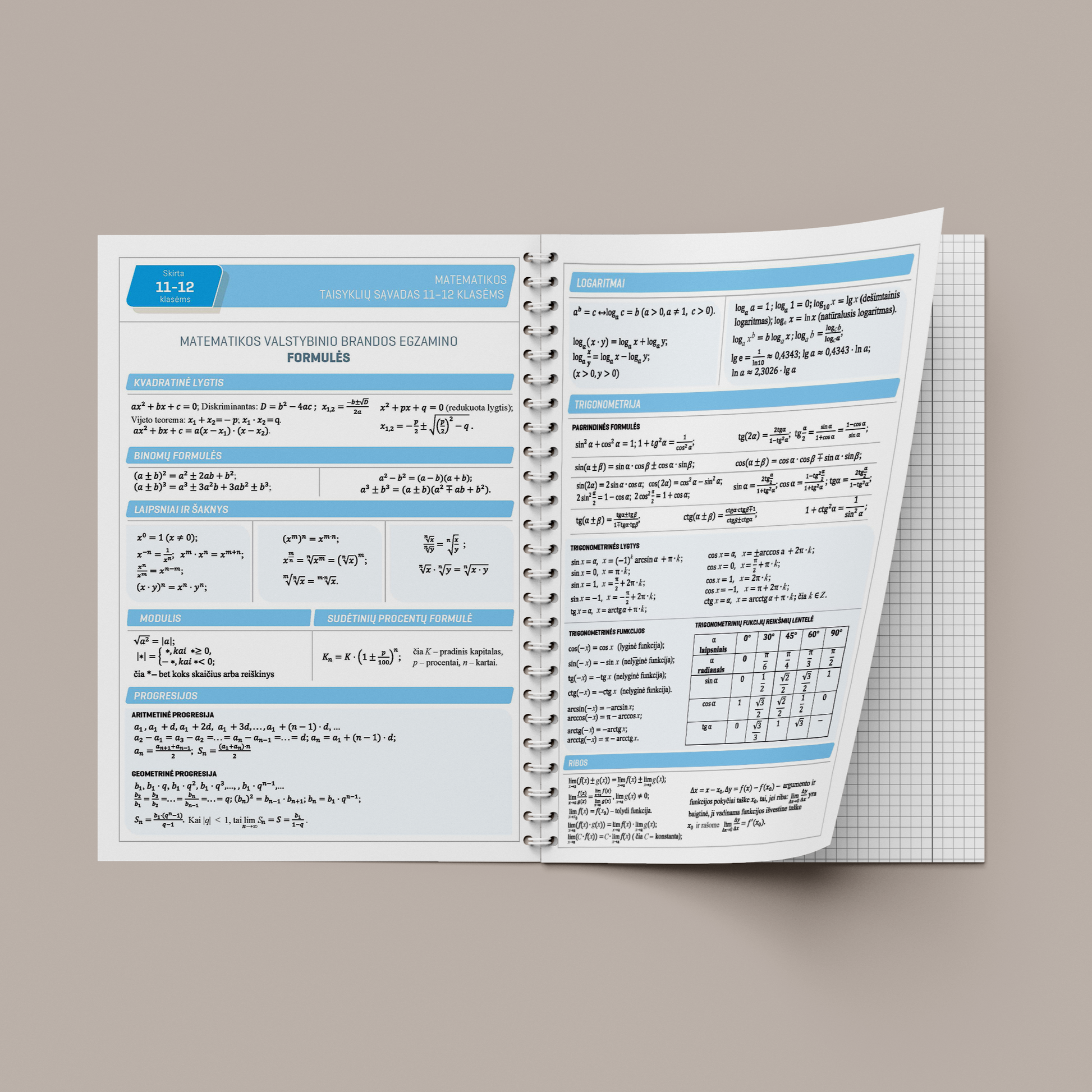Тетрадь с формулами, математика, 50 листов, клетка, формат A4, на спирали (для 11–12 классов)