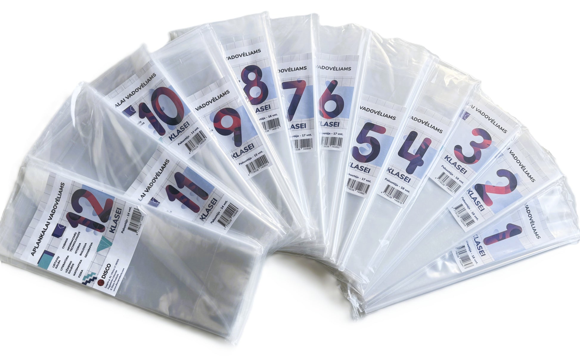 Набор для первого класса. Размеры подобраны по самым популярным литовским учебникам и упражнениям. В упаковке 18 шт.